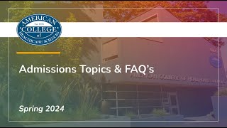 ACHS Spring 2024 Admissions Webinar The ACHS Admissions team has helped thousands of prospective students through the adm ...