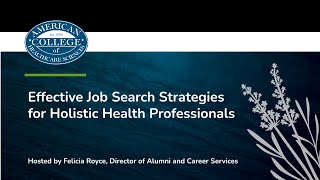 Conducting an Effective Job Search in the Holistic Health Field Join us for our webinar on effective job search strategie ...